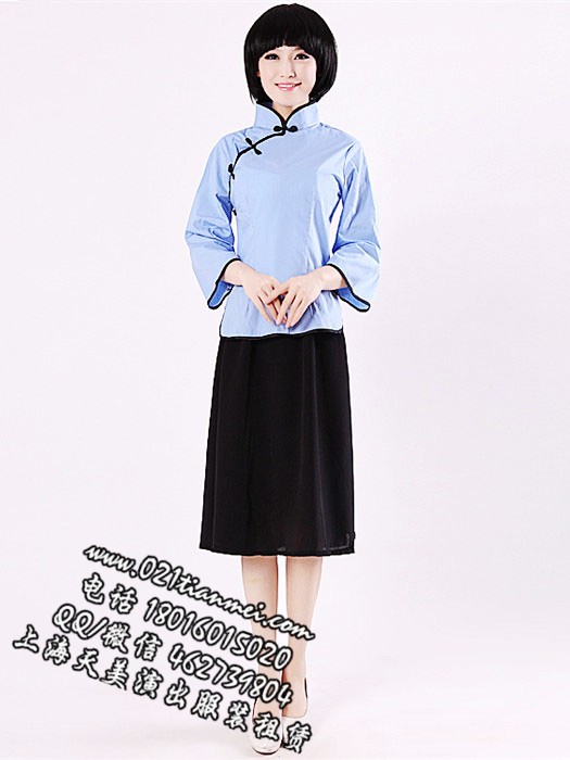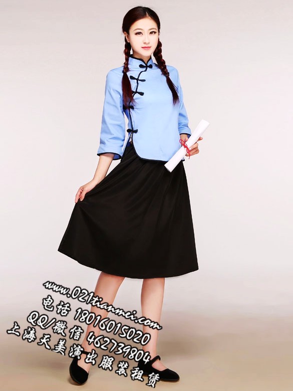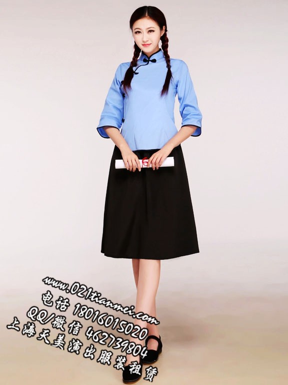 蓝色棉布五四青年学生女装